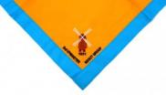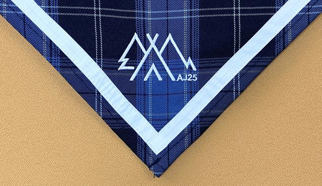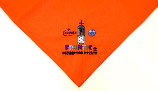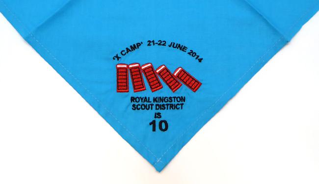 The embroidered logo is usually kept within around 100mm of the point of the necker so that the entire logo can be seen on the back when the neckers are worn.