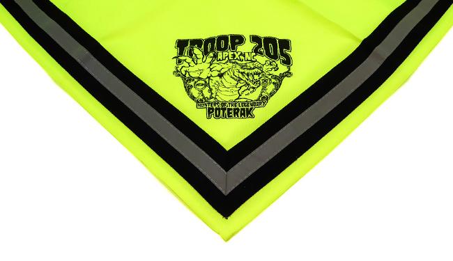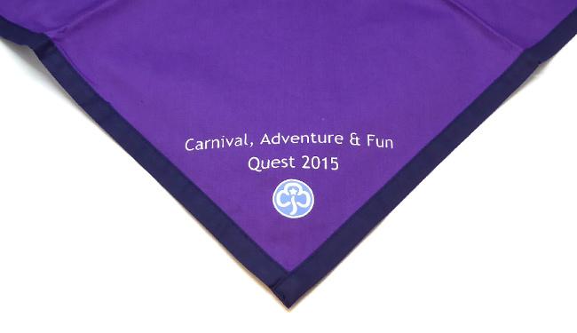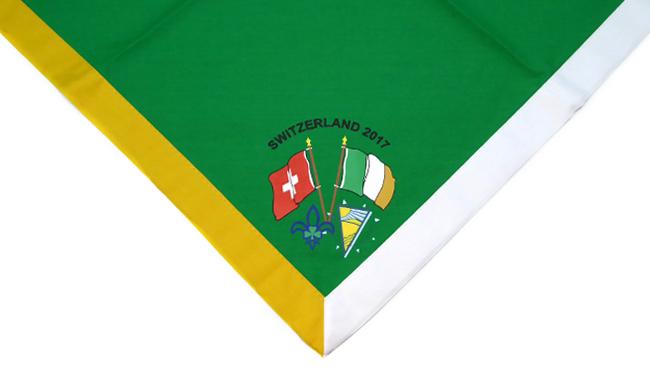 The logo is usually kept within around 100mm of the point of the necker so that the entire logo can be seen on the back when the neckers are worn.
